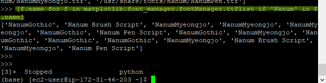 나눔 폰트 설치 확인 : >>> [f.name for f in matplotlib.font_manager.fontManager.ttflist if 'Nanum' in f.name]