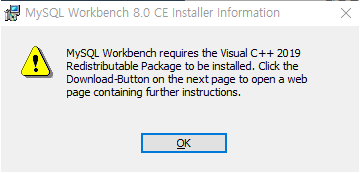 - C++ 없다는 오류 : "mysql workbench requires the visual c++ 2019 redistributable package to be installed"