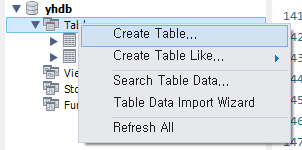 - 테이블 수정하고 싶을 땐, Alter Table 눌러서 들어가면 생성창 똑같이 열린다.