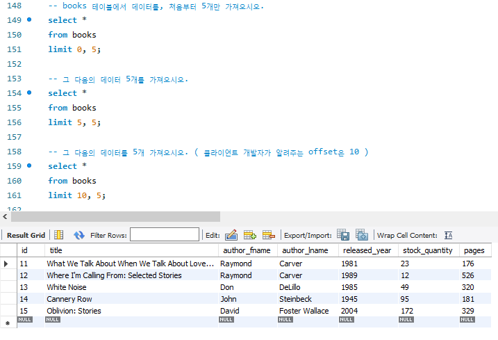 : limit 오른쪽에는 숫자 2개를 작성한다.
