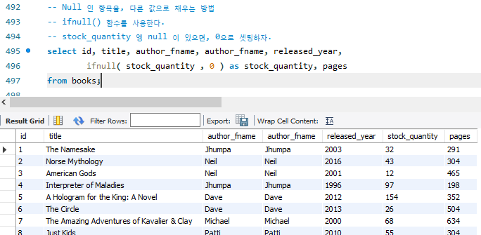ifnull( stock_quantity , 0 ) as stock_quantity, pages
