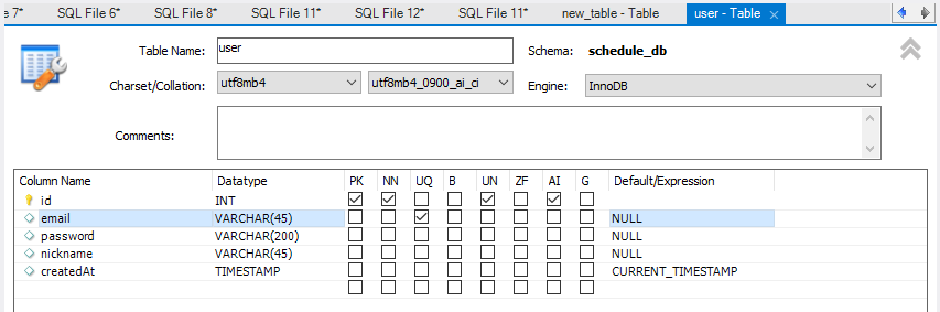 - 테이블 생성시 원하는 컬럼의 UQ 체크해 준다.