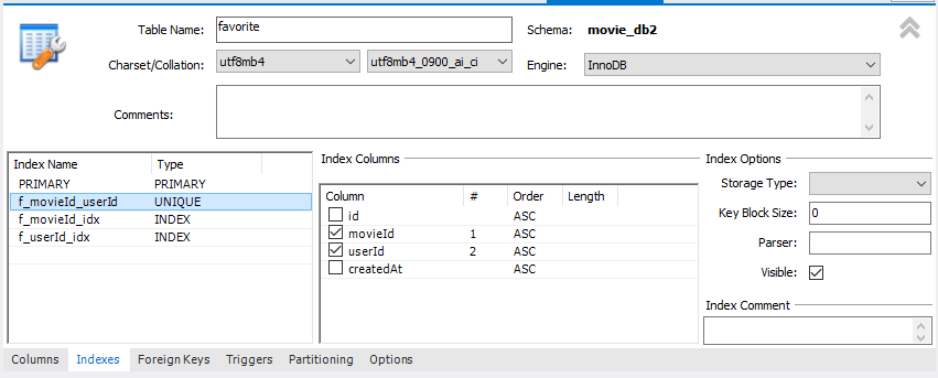 : 좋아요한 항목을 나타내는 등록된 영화 id와 등록된 유저 id는 두 개를 동시에 유니크 값으로 묶어준다.(인덱스탭에서 직접 설정)