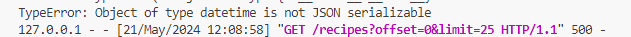 " TypeError: Object of type datetime is not JSON serializable" 발생