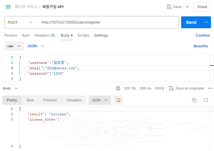 Flask에서 JWT 사용하기 _ 회원가입 API 만들기