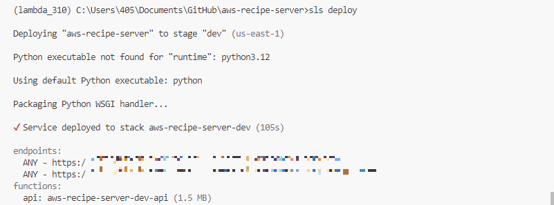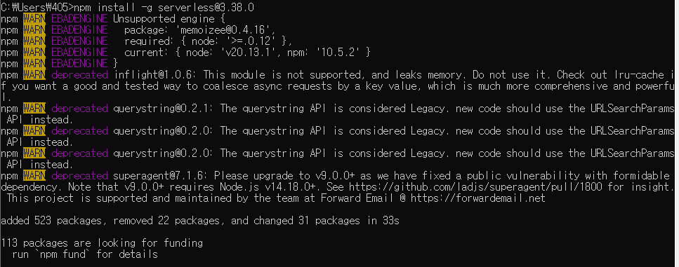 : 설치를 하고 $ sls deploy를 했을 때, 또 다른 오류가 발생되었다.
