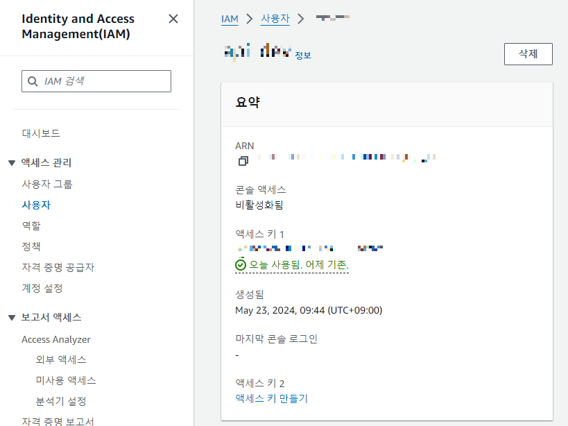 - AWS IAM 서비스 액세스 키 정보 가져와서 적어준다.