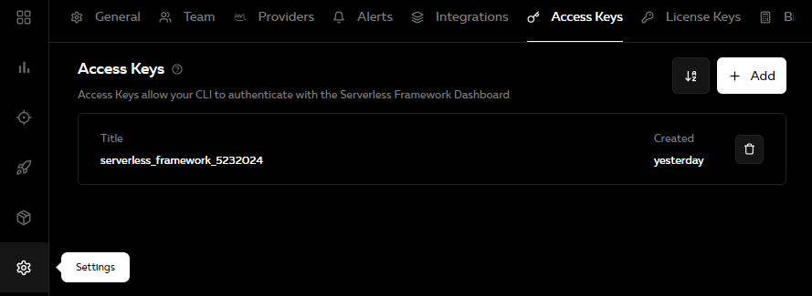 - 나의 서버리스 들어가는 것에 필요한 Serverless 액세스 키를 발급받아서 적어준다.