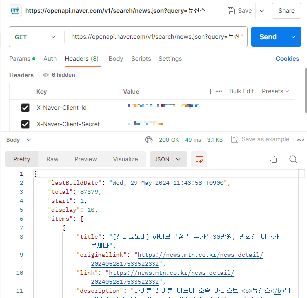 Open API 이용해서 나의 API 만들기 _naver 검색 API (뉴스)