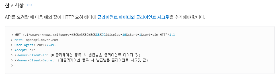 내가 사용할 openAPI 인 Naver 검색 API 설명을 확인하고,