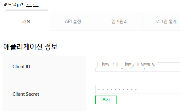 - 나의 애플리케이션을 만들 때 발급된 아이디 값과 시크릿 값을 입력해줘야 한다.