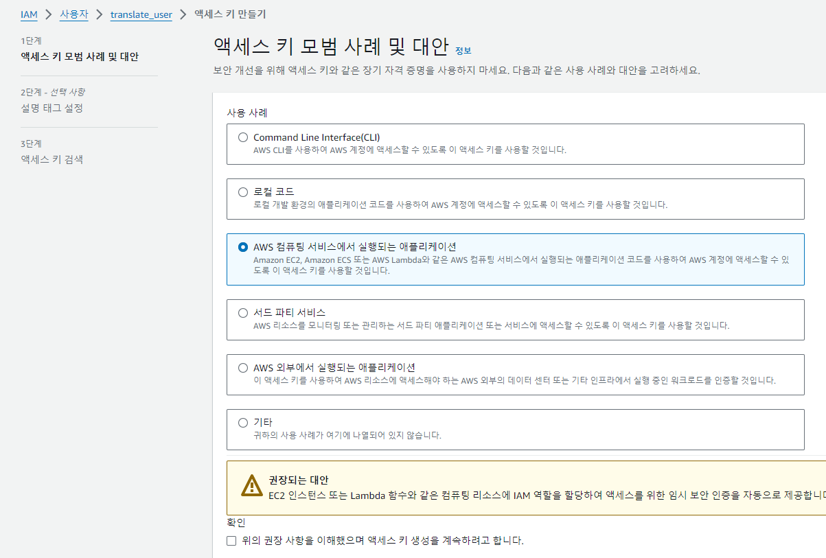: Amazon Translate을 사용하려고 하는데,