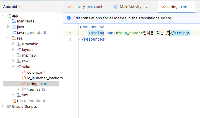 1. 이름 변경할 수 있는 xml 파일에서 작업한다.