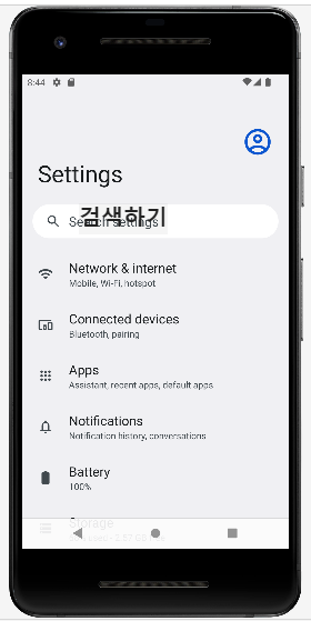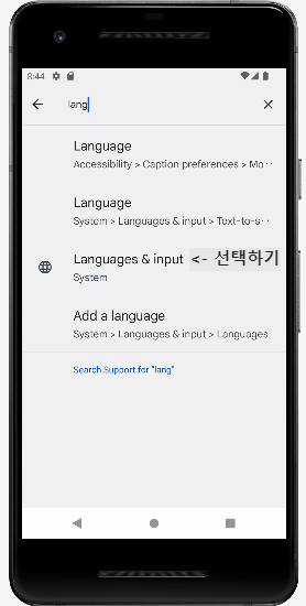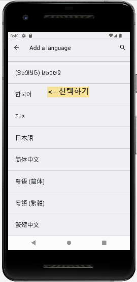 1. 에뮬레이터의 설정에 들어가서, 언어(Language)를 검색한다.
