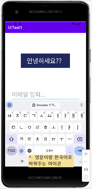 - 에뮬레이터에서 한국어랑 영문으로 바꾸는 아이콘을 눌러서 사용