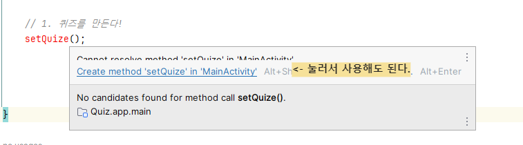 // 1. 퀴즈를 만든다!!