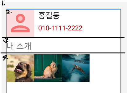 - horizontal 레이아웃에 사진과 veltical 레이아웃을 가로로 위치시킨다.