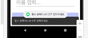 - Toast.makeText(무슨 액티비티, 텍스트, 팝업시간)
