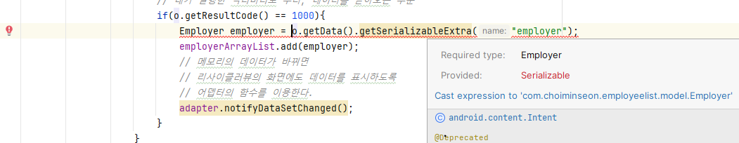 Employer employer = (Employer) o.getData().getSerializableExtra("employer");