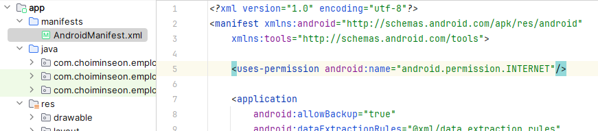 - manufests/AndroidManifest.xml 에 권한 설정해 주기