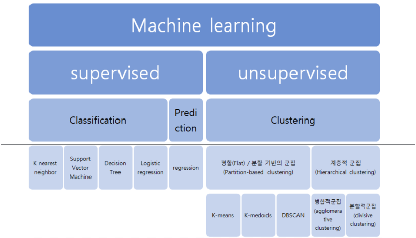 - Classidiation : 맞는가 아닌가, 몇가지 선택사항 중에 뭐가 정답인가를 학습시킨다