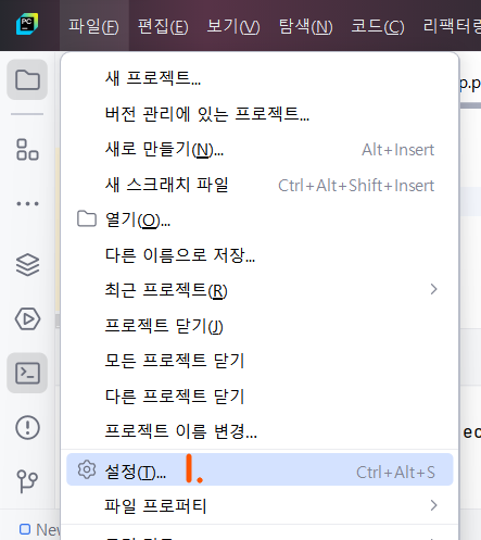 - 파일(File)의 설정(Settings)으로 들어간다.