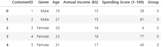 - 차트를 보고 K 값을 사람이 선택해서 그룹 정보를 정확하게 구해 df에 넣어야 한다