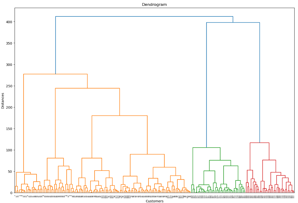 - Distances 가 200에서 자르는게 가장 가까운 것끼리 모인 것 같다고 판단되어 5개의 군집으로 설정한다
