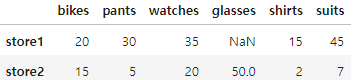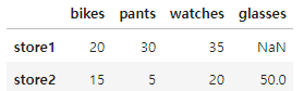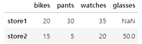- shirts 라는 컬럼을 만들고, store1 에는 15개, sotres2에는 2개로 만들어 보자
