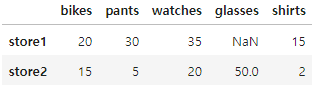 - shirts 라는 컬럼을 만들고, store1 에는 15개, sotres2에는 2개로 만들어 보자