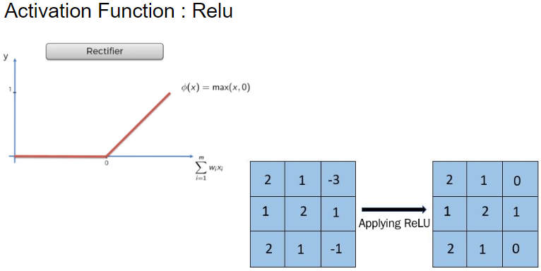 피처맵을 나타낼 때, 엑티베이션 은 'relu'를 사용해서 음수는 0으로 만들어준다