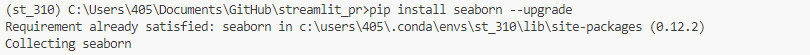 버전 업그레이드 명령어 : pip install seaborn --upgrade