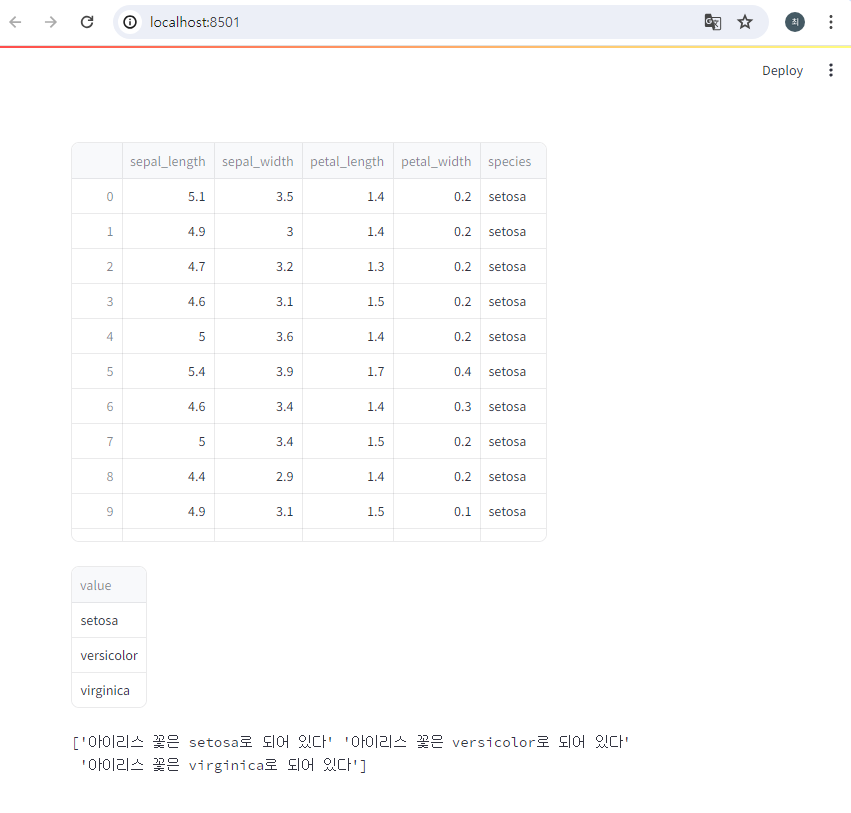스트림릿의 dataframe()함수를 사용하여 웹에서 보여준다
