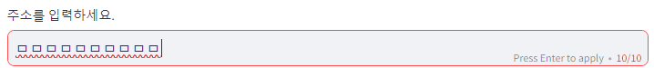 address = st.text_input('주소를 입력하세요.', max_chars=10)