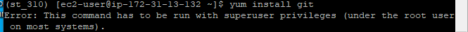 $ yum install git 이렇게만 작성하면 설치 거절이 되기 때문에 sudo를 붙여야 한다