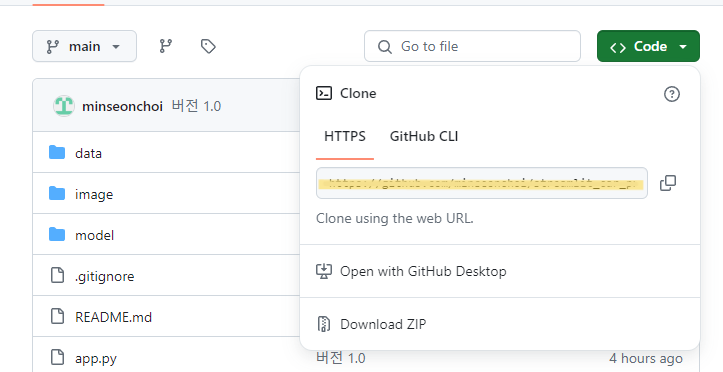 Github 폴더 안에 github.com 에서 내가 만들어둔 레파지토리 URL 을 복사해서 클론한다